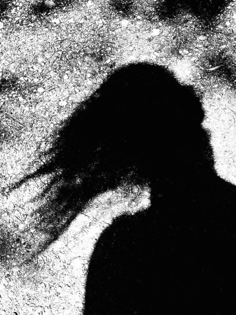 Depuis plusieurs années, Emmanuelle Michaux développe une pratique à la croisée de l’image, du geste pictural et de l’installation. Son œuvre puise dans une réflexion sur la mémoire, l’enfance, la disparition, mais ce sont là des thèmes qui ne se donnent jamais frontalement. Elle privilégie l’indice, le fragment, l’ombre portée. Le corps de l’artiste, toujours présent mais jamais frontal, se manifeste par soustraction : silhouette projetée sur un tronc, main filtrée par la lumière, voix muette dans un film muet. Ce choix formel inscrit le travail dans une tradition du décentrage du sujet, dans la lignée de ce que Georges Didi-Huberman nomme « survivance » ou ce que Tim Ingold appelle « ligne de vie ».