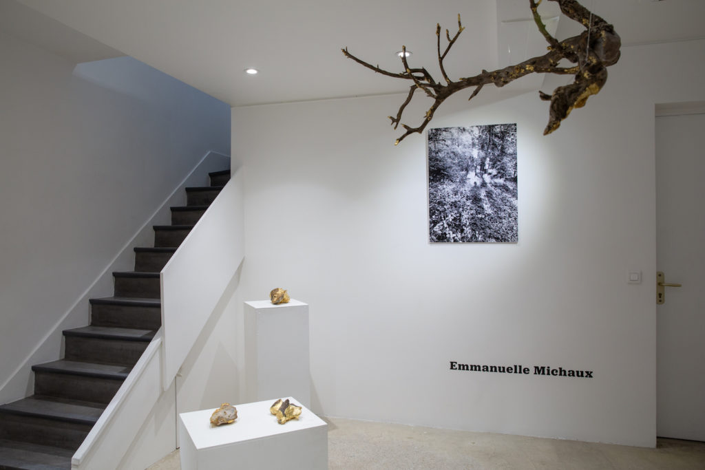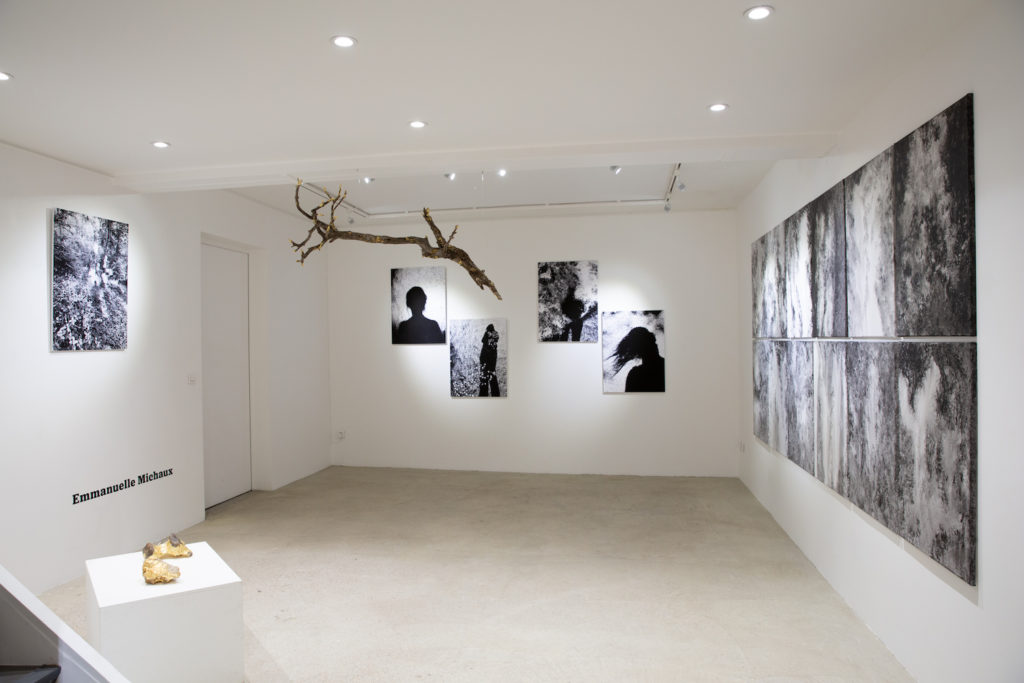 Dans cette exposition conçue comme un parcours à la fois visuel, sensoriel et réflexif, Emmanuelle Michaux interroge notre rapport au monde à travers une constellation d’images et de matières glanés dans une forêt où l’artiste vit seule depuis un an. Photographies en ombres chinoises, peintures abstraites en noir et blanc, fragments naturels rehaussés de feuilles d’or, une vidéo-mémoire composée d’archives personnelles et de paysages intimes.